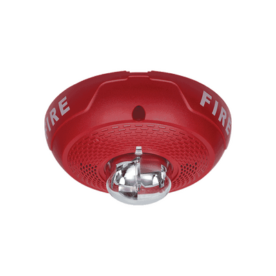 Bocina con Lámpara Estroboscópica, Montaje en Techo, Color Rojo, Nuevo Diseño Moderno y Elegante y Menor Consumo de Corriente