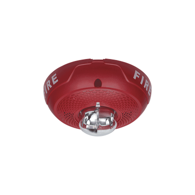 Bocina con Lámpara Estroboscópica, Montaje en Techo, Color Rojo, Nuevo Diseño Moderno y Elegante y Menor Consumo de Corriente