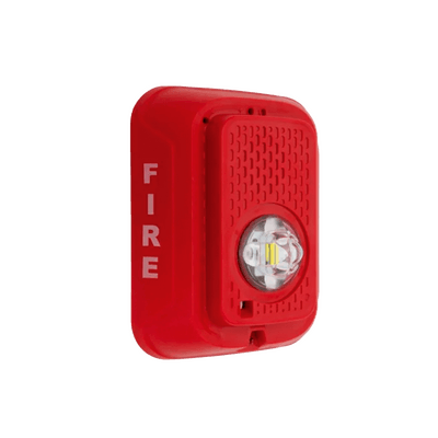 Sirena con Lámpara Estroboscópica a 2 Hilos, Montaje en Pared, Color Rojo, Configuración Estroboscópica Seleccionable y Texto en Español, Nuevo Diseño Moderno y Elegante y Menor Consumo de Corriente