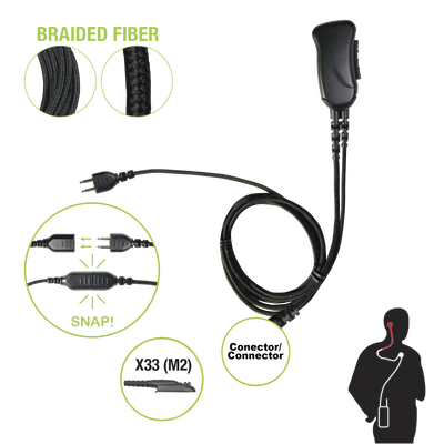 Micrófono con cable de fibra trenzada serie SNAP compatible con conector Multipin Motorola Serie GP.