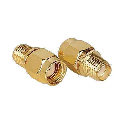 Adaptador SMA Macho Inverso a SMA Hembra, Oro/ Oro/ Teflón,