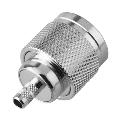 Conector N Macho de Rosca Izquierda, Anillo Plegable para Cable RG-58/U, Grupo C, Níquel/ Oro/ Teflón.