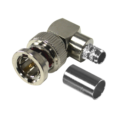 Conector BNC Macho en Ángulo Recto para 75 Ohm, Anillo Plegable en Cable Coaxial RG-6/U, Grupo Q, Níquel/ Oro/ Teflón. cantidad