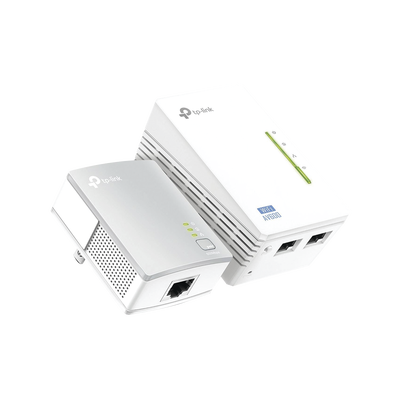Kit Adaptador PowerLine Inalámbrico 300Mbps, 2 Puertos 10/100 Mbps, HomePlug AV, Plug and Play, WiFi Clon.