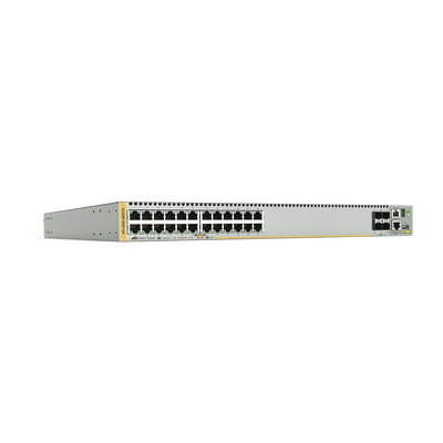 Switch Stackeable Capa 3, 24 puertos 10/100/1000 Mbps + 4 puertos SFP+ 10 G y dos bahías hotswap PSU, Versión Federal