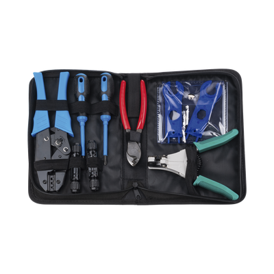 Juego de Herramientas y Accesorios, para Instalación de Sistema Solar. Incluye: Pinzas (3), Desarmadores (2), Llaves (2) y Accesorios (7).