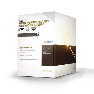 Cable Cat6+ CALIBRE 23 UTP, Intemperie con GEL DOBLE CHAQUETA, UL, con garantía de 25 años, color negro de 152.5 Metros, para Climas EXTREMOS