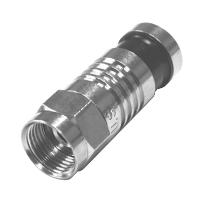 Conector F Macho Plegado Axial por Compresión para RG-59/U, Cuerpo en Níquel y Banda Negra. cantidad
