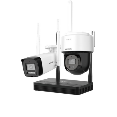 KIT Inalámbrico / 1 Cámara Bala 1 Cámara PTZ / 2 Megapíxeles / 1 Grabadora Wi-Fi / Hasta 512 GB de Almacenamiento (No Incluye Memoria SD) / Incluye Fuente y Cable RJ45