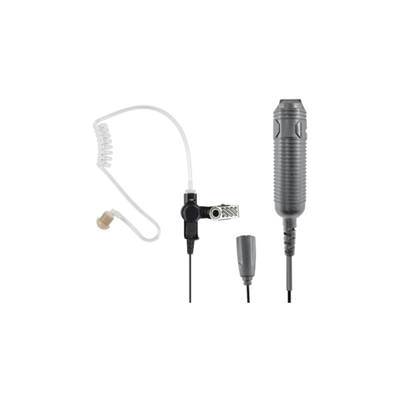 Heavy Duty 3-Wire Surveillance Kit: Features acoustic tube earphone with TWIST CONNECTOR, remote PTT switch and low-profile lapel microphone. Straight cable.