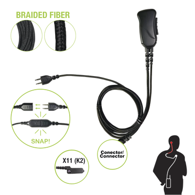 Micrófono con cable de fibra trenzada serie SNAP compatible con KENWOOD conector Multipin.