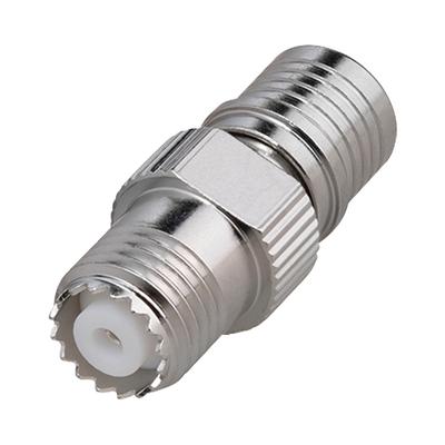 Adaptador en Línea, de Conector QMA (Quick Mate) Macho a Mini-UHF Hembra, Bronce Blanco/ Oro/ Teflón. cantidad