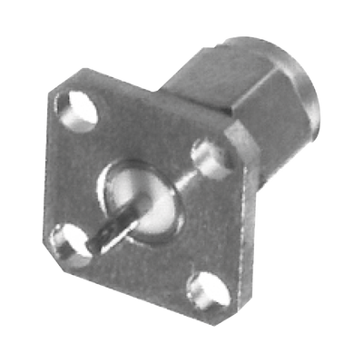 Conector SMA Macho de Montaje en Panel de 4 Perforaciones y Terminal Soldable, Níquel/ Oro/ Teflón.​