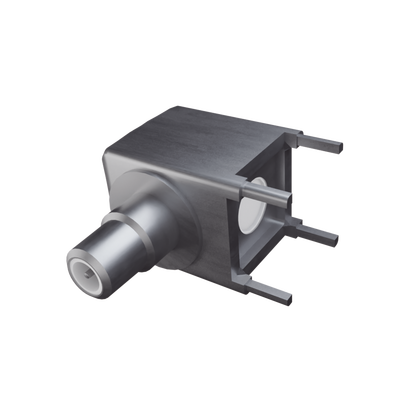 Conector SMB Hembra (PIN Macho) en Ángulo Recto para Montaje en PCB, 4 Patas, Níquel/ Oro/ Teflón.​