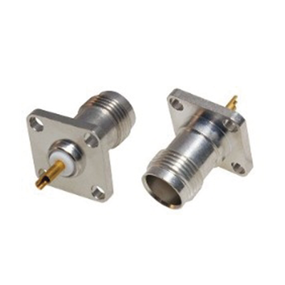 Conector TNC Hembra para Chasis de 4 Perforaciones de 13 mm, Terminal Soldable, Bronce Blanco/ Oro/ Teflón. cantidad