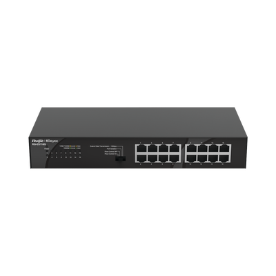 RG-ES116G, switch no administrable, no PoE de 16 puertos 10/100/1000Mbps.
