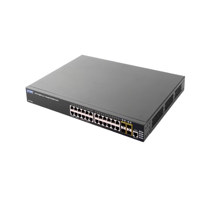 Smart Switch PoE+ administrable Capa 2, 24 puertos 10/100 Mbps, 4 puertos 10/100/1000 Mbps + 2 puertos SFP combo, 192 W