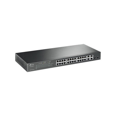 Smart Switch PoE+ administrable Capa 2, 24 puertos 10/100 Mbps, 4 puertos 10/100/1000 Mbps + 2 puertos SFP combo, 192 W