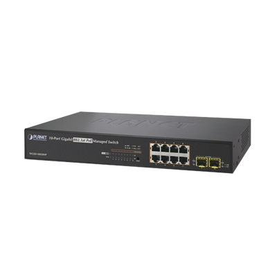 Switch Administrable L2+ de 8 puertos 10/100/1000T PoE+, 2 puertos SFP 100/1000X