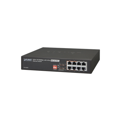 Switch PoE no Administrable de escritorio 8 puertos 10/100 Mbps, 4 puertos PoE, 57 W