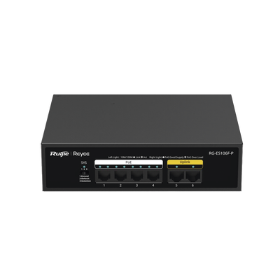 Switch PoE de 6 Puertos 10/100 Mbps, No Administrable, 54 W, Diseño de Alta Calidad, Visible en Ruijie Cloud