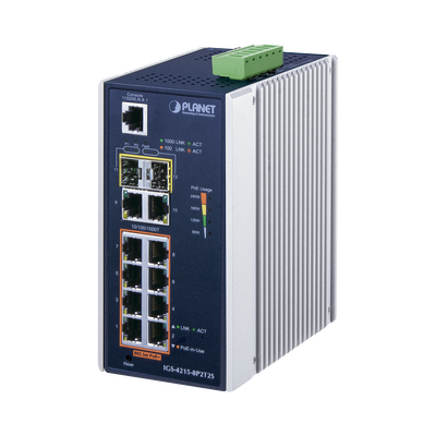 Switch industrial Administrable L2 de 8 puertos Gigabit c/PoE 802.3at + 2 puertos Gigabit + 2 puertos SFP (240W)