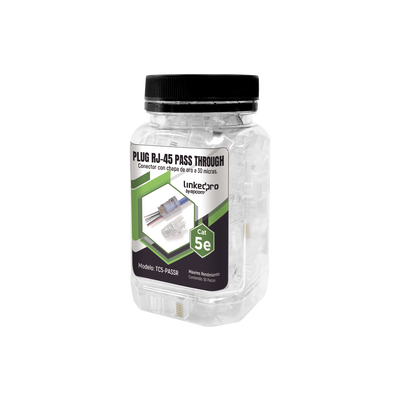 Bote con 50 Plugs Pass through RJ45 Cat5e sin blindaje, con alivio de tensión incluido, chapado de oro a 30 micras para durabilidad extrema cantidad
