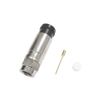 Conector F Macho de Compresión Axial con Borne Negro para instalar en Cable Coaxial RG-11, 75 Ohm, Bronce-Niquelado. cantidad