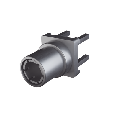 Conector Mini SMB Macho (PIN Hembra) Montaje Vertical para PCB, 75 Ohm, Oro/ Oro/ Teflón.