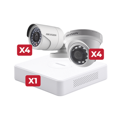 Kit de CCTV 2 Megapíxeles / Incluye Grabadora de 8 Canales / Cámara Turret / Cámara Bala