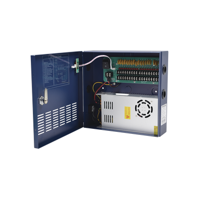 Fuente de poder profesional HEAVY DUTY de 11 – 15 Vcd @ 20 Amper, para 18 cámaras, con voltaje de entrada de: 96-264 Vca