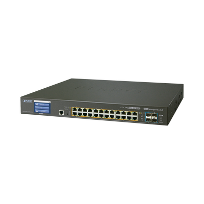 Switch Administrable L2+, 24 puertos Gigabit PoE 802.3bt, 4 puertos 10G SFP+,Pantalla táctil, (400W)