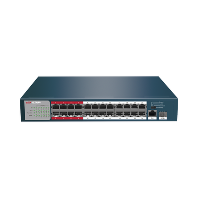 Switch PoE+ / No Administrable / 24 Puertos 10/100 Mbps PoE+ / 1 Puerto 10/100/1000 Mbps + 1 Puerto SFP Uplink / PoE hasta 250 metros / 230 W cantidad