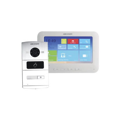 Kit de Videoportero IP / 1.3 Megapixel / Monitor Touch / Lector de Tarjetas (MIFARE) / Compatible con Hik-connect para recepción de llamada con App móvil